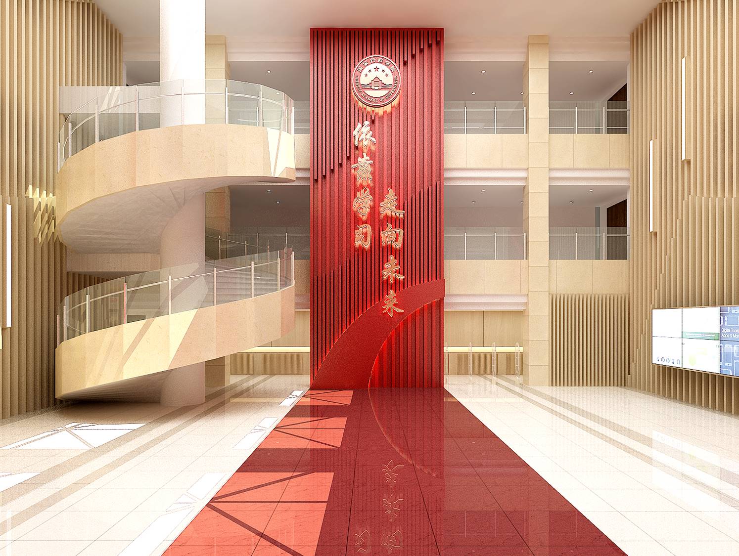 在保持傳統圖書館功能的前提下,以莊重、大氣、現代化為設計原則,針對圖書館大廳及閱覽室兩部分,既有莊嚴、明亮的大廳設計也有輕松、活潑、舒適的閱覽室設計,為國家行政學院圖書館打造具有學院形象、圖書閱覽、學員交流、教研成果的互動展示空間。